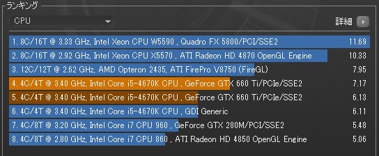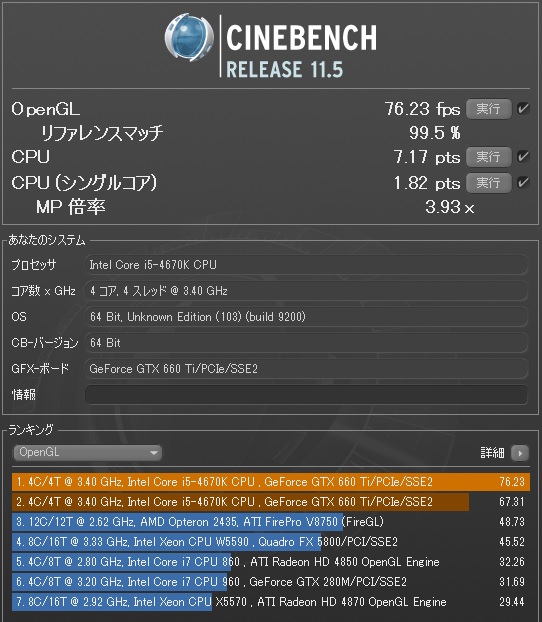 OpenGL・CPUともにメモリ換装後はパフォーマンスが向上しました。