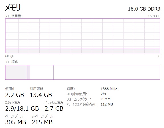 8GBから16GBになったことで、CPU、メモリのパフォーマンスが向上しました。