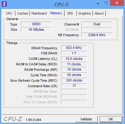 CL10-11-10-30 1. 5V、速度は1866MHzで動作してますね。