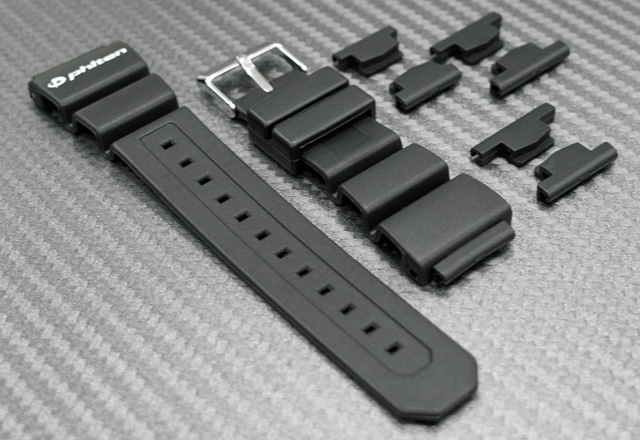 本製品には時計バンド本体とは別にフィットパーツという別パーツが付属しており、それを付け替えることによって18・20・22・24mm幅に対応するというちょっとしたアイデアが盛り込まれています。