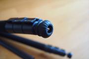 センターパイプを上げなくても充分な高さがあり、身長173cmのわたしの場合、このままでもほんの少し屈むだけでファインダーを覗くことができ、少し上げるだけで屈まずにすむので、高さは申し分ない。