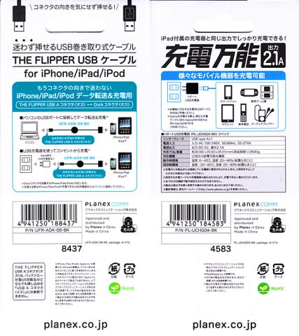 また、電源プラグ部分が可動してしまえるので持ち運びにも便利です。THE FLIPPER USBケーブル for iPhone/iPad/iPod(UFR-ADK-08-BK)は、USBコネクタを上下どちら向きでも挿せる構造になっていますので、向きを気にする必要がありません。また、巻き取り式ケーブルですので持ち運びに便利です。最長80cmと長さも十分にあります。