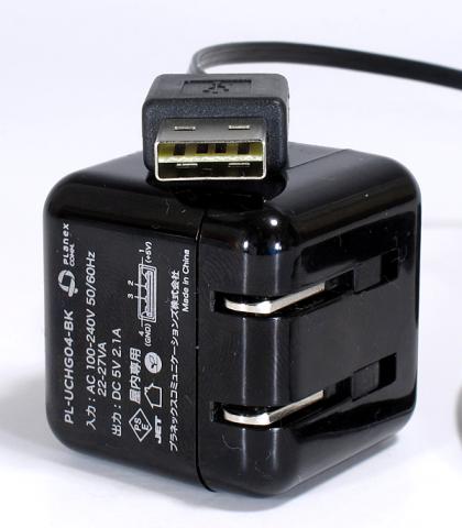 タイムセールという言葉に騙されたー_| ̄|○「充電万能」USB 1ポート充電器(PL-UCHG04-BK)は、非常のコンパクトでこれで2.1A出力できるとはと思うくらいコンパクトです。