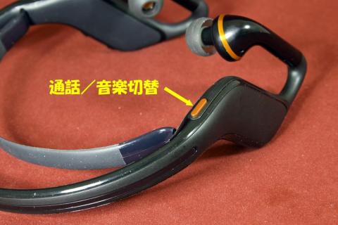 そして左側下部にもボタンが付いており、こちらは通話と音楽の切り替えボタンになります。