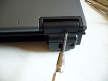 あとは、キーボードの中央部分が固く嵌り込んでいるのはわかりましたので、ちょっと力を入れて、パチンとキーボードを持ち上げて外して、キーボードが、二つにフィルム状のケーブルをマザボから外します。