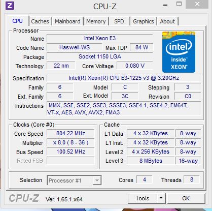 IntelXeonE3-1225v3 Intelさんが仕様ミスで間違えてHTT有効のまま出荷しちゃったというお茶目なCPU。俗に言う初期ロットのSR14Uってやつです。 CPU-Z 右...