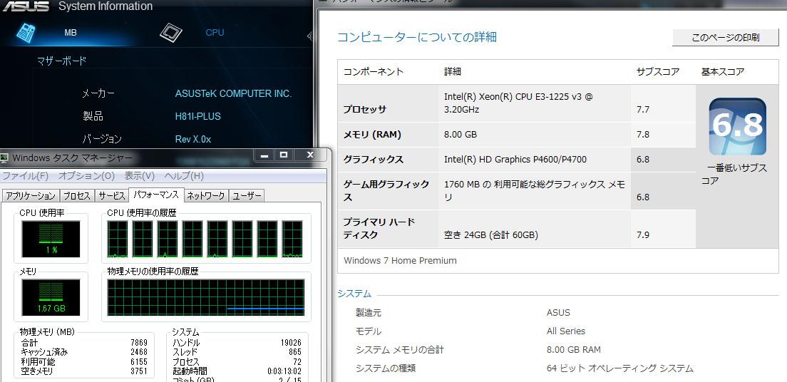 ※購入したマザーボードは1225v3に正式に対応していないので、真似されて動作しなくても責任は持てません(-_-;)