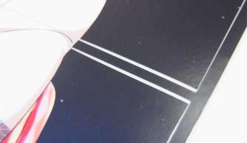 見栄えを重視するなら自作でギリギリサイズにしたほうが絵柄ががっつり入るのだが、実際の貼り付け作業やその後の剥がれやすさを考えると、このサイズが扱いやすそう。