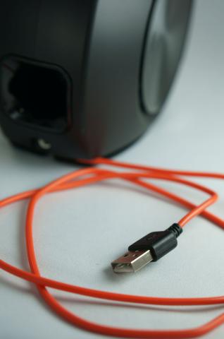 右はUSBケーブル、左はスピーカー間のケーブル。