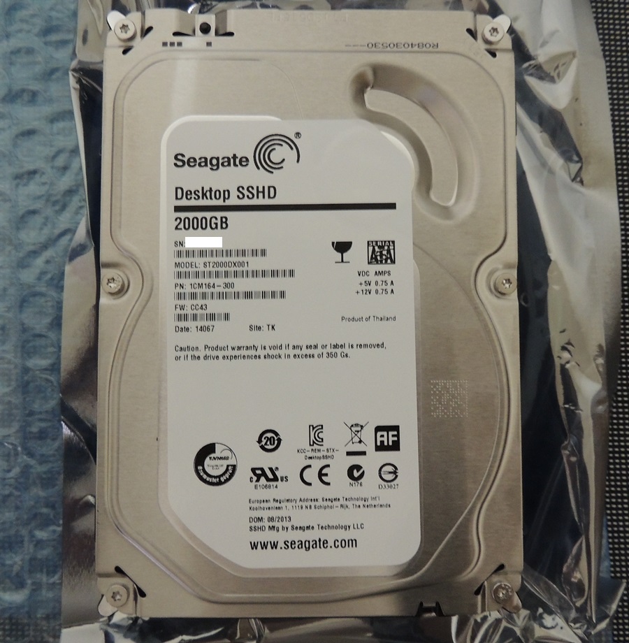 プラッタは一枚で1TBとのことなので、この2TBモデルは二枚のプラッタを格納している。