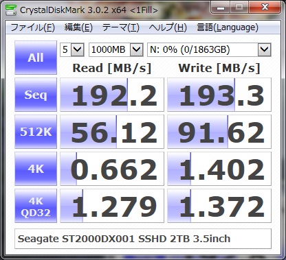 SSHDは何度かベンチを取ることで速度が上がる傾向があるというので、四回ほど取得してみたが、だいたい同じような数字が出た。