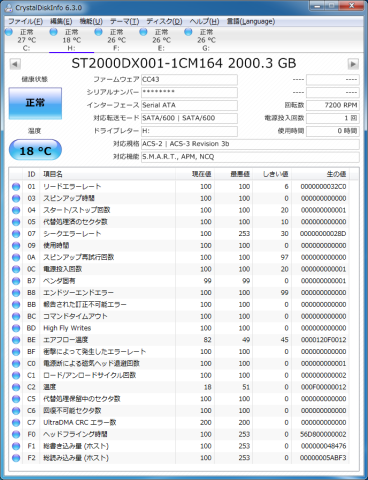 取り敢えずCrystal Disk Infoの表示内容を先に確認しておきましょう。