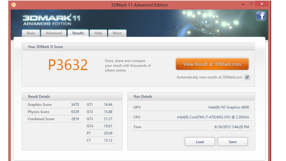 3D MARK 11でDirectX11dにおけるパーフォーマンスを測定してみたら、P3632ほどの良いスコアを得られた!