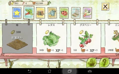 畑で作物を育て、売りに行ったりして、お金を稼いで庭に設置するものを買います。野菜を売りに行ったりしている間に、仲間が増えたり、絵本を拾ったり。