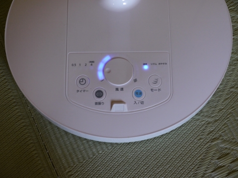 リモコンでも出来るが、ジョグダイヤルで風量操作も簡単。青く光るものCool