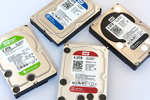 他の色を自宅内でざっと探してみると4色全部見つかりまして、スタンダードな使用に向いたブルー、低騒音・低発熱のエコ的なグリーン、パフォーマンス重視のブラック、そして今回のレッドはNAS向けの信頼性の高い安定したパフォーマンスを備えたドライブになります。