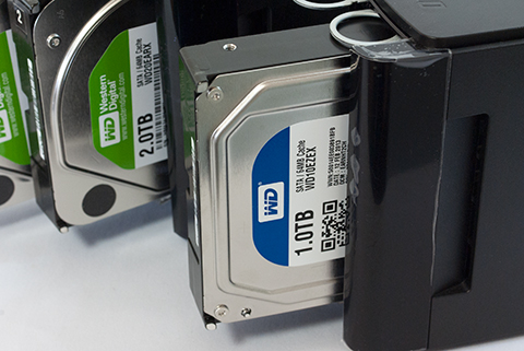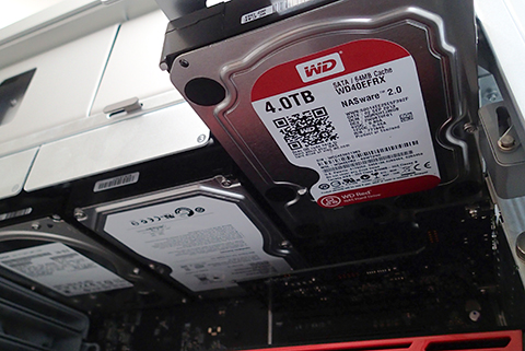 こちらは標準では他社のドライブが入っていましたが、1台破損したためWD Blueをスペアとして入れていました。RAID1での運用だったので、データの損失はなく助かった思い出があります。
