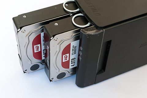 どちらのNASも最新のモデルではありませんが、今も現役で使用しているものです。それぞれのドライブは、ネットワーク内のPCやMacと連動して電源が入る設定にしているため、結果的にほぼノンストップで稼働しています。