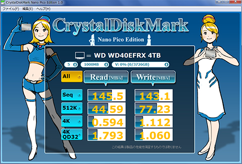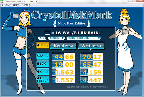 参考までにRAID1設定のものですがGreenのベンチ結果を載せておきます。