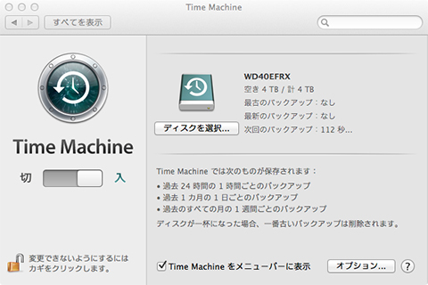 TimeMachineはディスク容量が一杯になると古いデータはどんどん消されていきます。