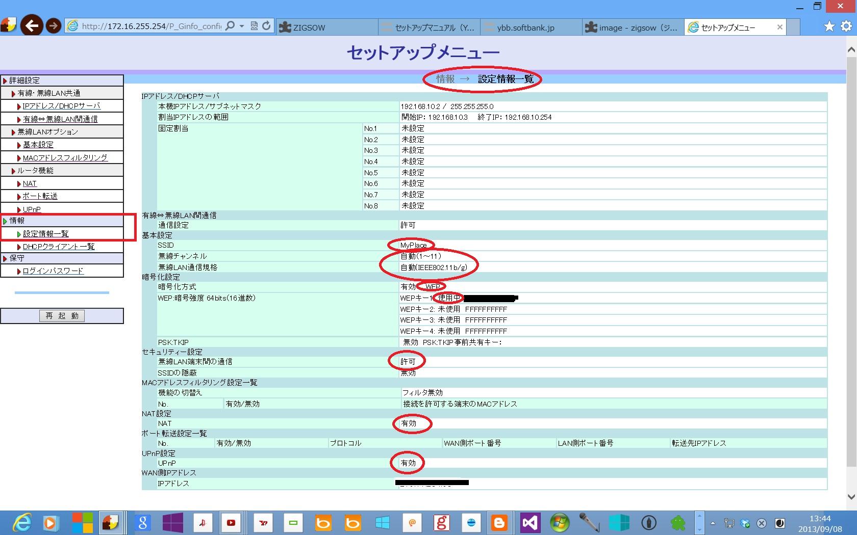 ヤフーのADSLモデムが許可したアンテナ?FONがWEB キー1の値のものといっている。
