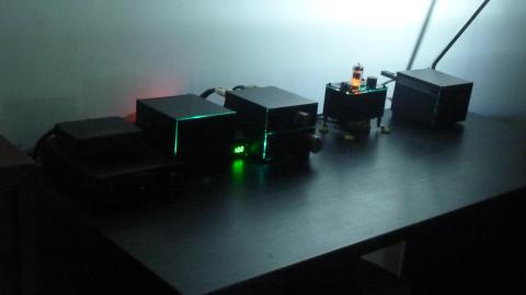 右端の四角いのが件のAKI.DACのトランスDACとIrBerryDACで、常用じゃないのが勿体ないですね。