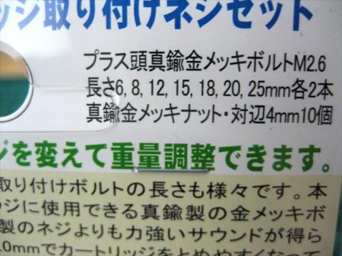 ◆各ボルトの長さ/重さ: ・6mmボルト:0.36g/2本 ・8mmボルト:0.41g/2本 ・12mmボルト:0.53g/2本 ・15mmボルト:0.63g/2本 ・18mmボルト:0.73g/2本 ・20mmボルト:0.81g/2本 ・25mmボルト:0.98g/2本 ・対辺4mmナット:0.14g/10個入◆カートリッジをヘッドシェルに取り付ける際に使用する真鍮製のボルトとナットのセットアナログカートリッジは種類が多く、その取り付け部の寸法も千差万別異なっているため取り付けボルトも様々な長さのものが必要になります一般的に使用されているアルミ製のネジは強度が低いため、剛性の高い真鍮製のボルトとナットにする事で音質向上します材質はすべて真鍮製で非磁性下地処理24金メッキ仕上げボルトは長さが6、8、12、15、18、20、25mmの7種類それぞれ2本づつと対辺4mmのナットが10個セット◆重さの微調整にはナットの個数やボルトの長さを調整するとヘッドシェル部の重さを統一することが可能になり使いやすくなりますカートリッジとヘッドシェルの合計と針圧を含めた重さを統一しておくとカーリッジ交換時に針圧調整の必要がなくなりカートリッジ交換がしやすくなります付属しているナットは対辺が4mmと小さくなっており、カートリッジボディーの溝部分にも無理なく使用することができます / 素材:真鍮・非磁性下地処理、24金メッキ仕上げボルト寸法:M2.6・ボルト長さ:6、8、12、15、18、20、25mm各2本(合計24本)ナット寸法:M2.6・対辺4mmナット10個 /