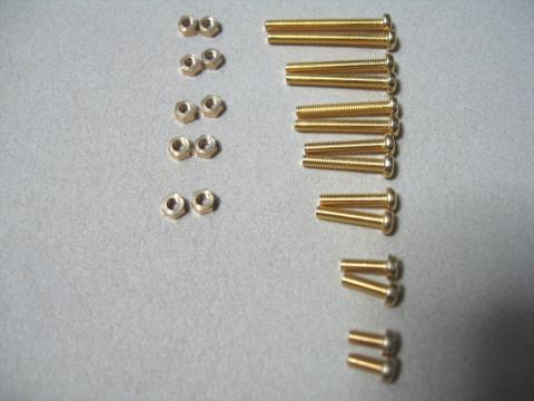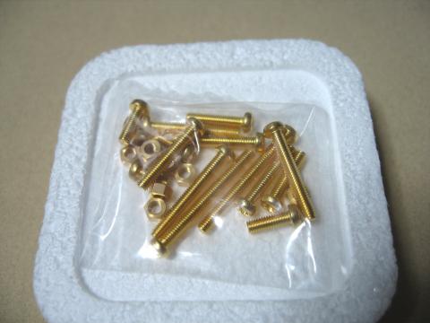 ◆形式 カートリッジ取り付け用ボルト・ナット ◆セット内容 M2.6ボルト 長さ6, 8, 12, 15, 18, 20, 25mm各2本 M2.6 対辺4mmナット10個 ◆材質 真鍮・非磁性下地処理、24金メッキ仕上げ