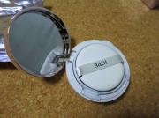 フタを開くと、その裏側には鏡があって、パフが入っています。