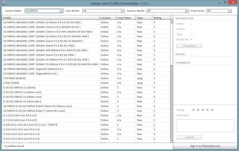 (Lens Profile Downloaderの利用には、Adobe Airが必要。)