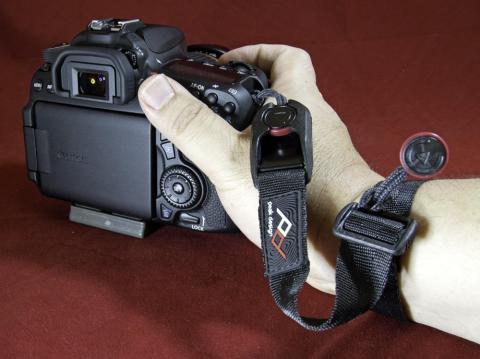 カメラを構える時には、輪っかに腕を通し軽く締めてやればもしもの時も安心です。