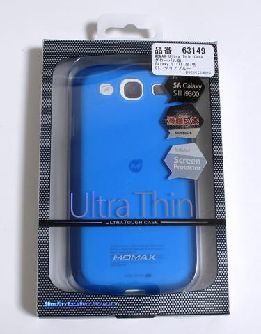 微妙に形状が異る国内版では使用できないとの注意書きがありましたので、国内版を購入していたら使用できなかったかも知れません。ケースの色はクリアーブルーでSAMSUNGのロゴが透けて綺麗に見えています。透明なケースがあれば、Galaxy S3の本体色の綺麗なホワイトが生きるのですが、売っていなかったのでクリアーブルーにしました。