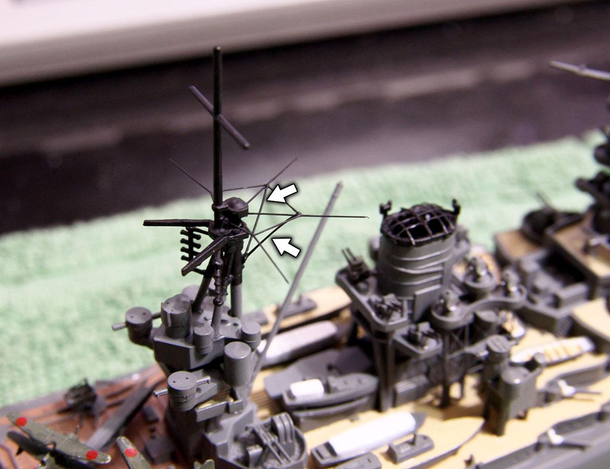 0.15号のテグスでも張ろうかと思ったんですが、1/700ってことを考えると実際には26mmになってしまう訳で、太さ的にはどうなんでしょう。
