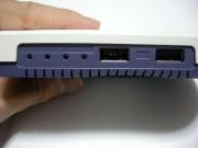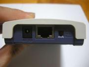 上部にスイッチとLAN端子にACアダプタのプラグがあります。左部にUSB端子が2つあります。