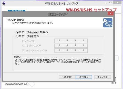 IPアドレスを自動的に取得にチェックを入れて「次へ」をクリックします。