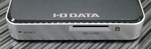 SDカードは、奥までスッポリ入って本体から飛び出さないタイプのスロットが採用されており、カードの先端部分か半分くらいしか入らない一般的なコンパクトタイプのカードリーダー/ライターと比較すると、差したまま持ち運べる点が魅力です。