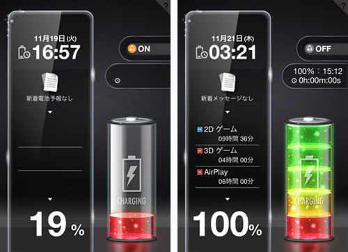 「電池予報RT」というアプリを使用、充電に掛かる時間も予想してくれます。