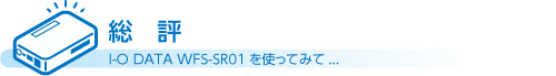 以上をもちまして、I-O DATA『WFS-SR01(ポケドラ)』のレビューとさせて頂きます。なお、今後使っていて新たに感じたことやファームウェアの更新などで変更された内容がありましたら随時追加・更新して行く予定です。
