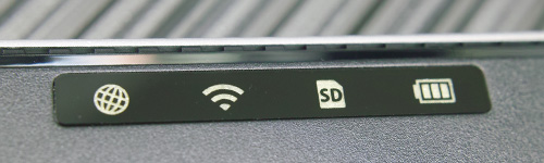 本体上面にはアイコン表示のランプが配置されていて、その時の本体の状態を知ることが出来ます。そして裏面にはMACアドレスやSSID、暗号キー等が記載されています。