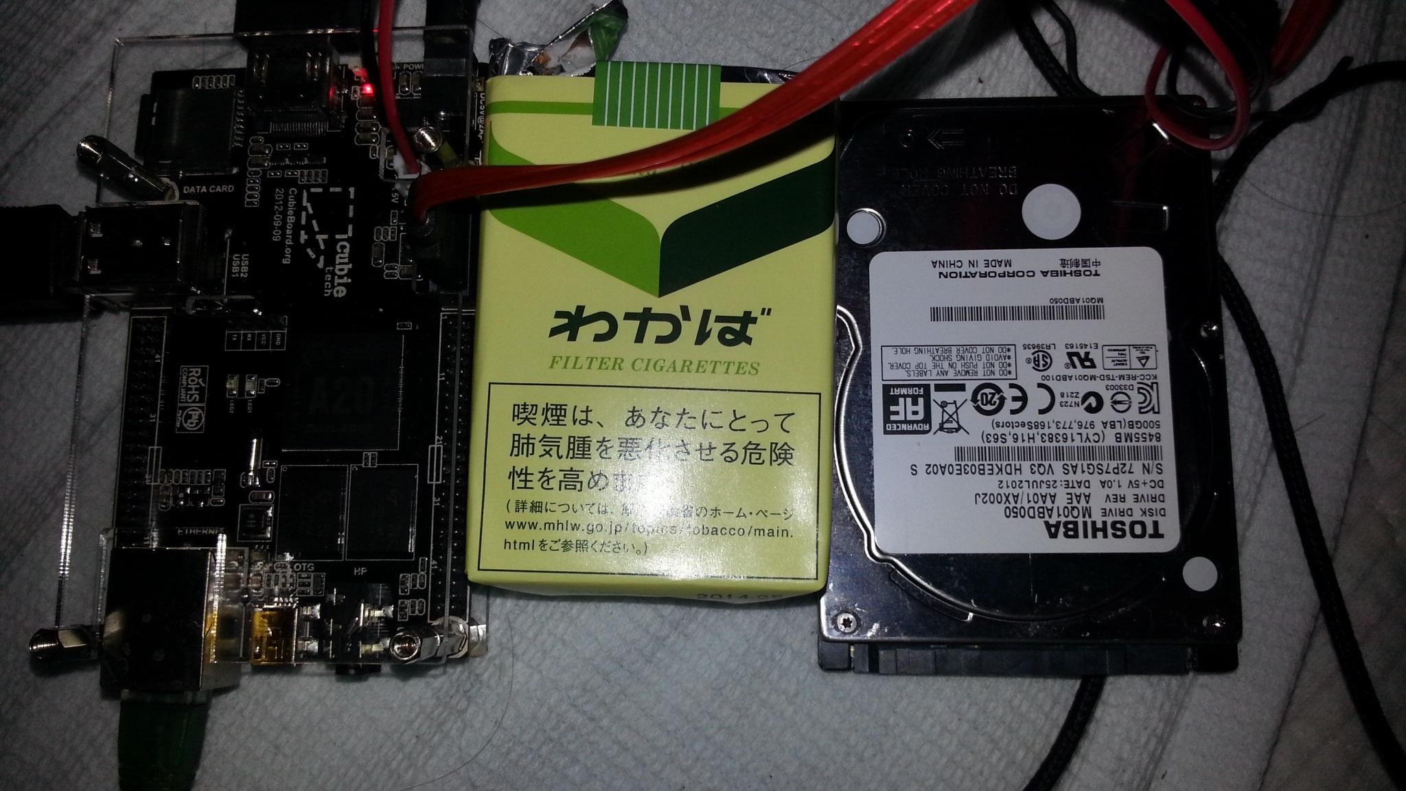そして最大の売りであるSATA-HDDを繋いで・・・というところで