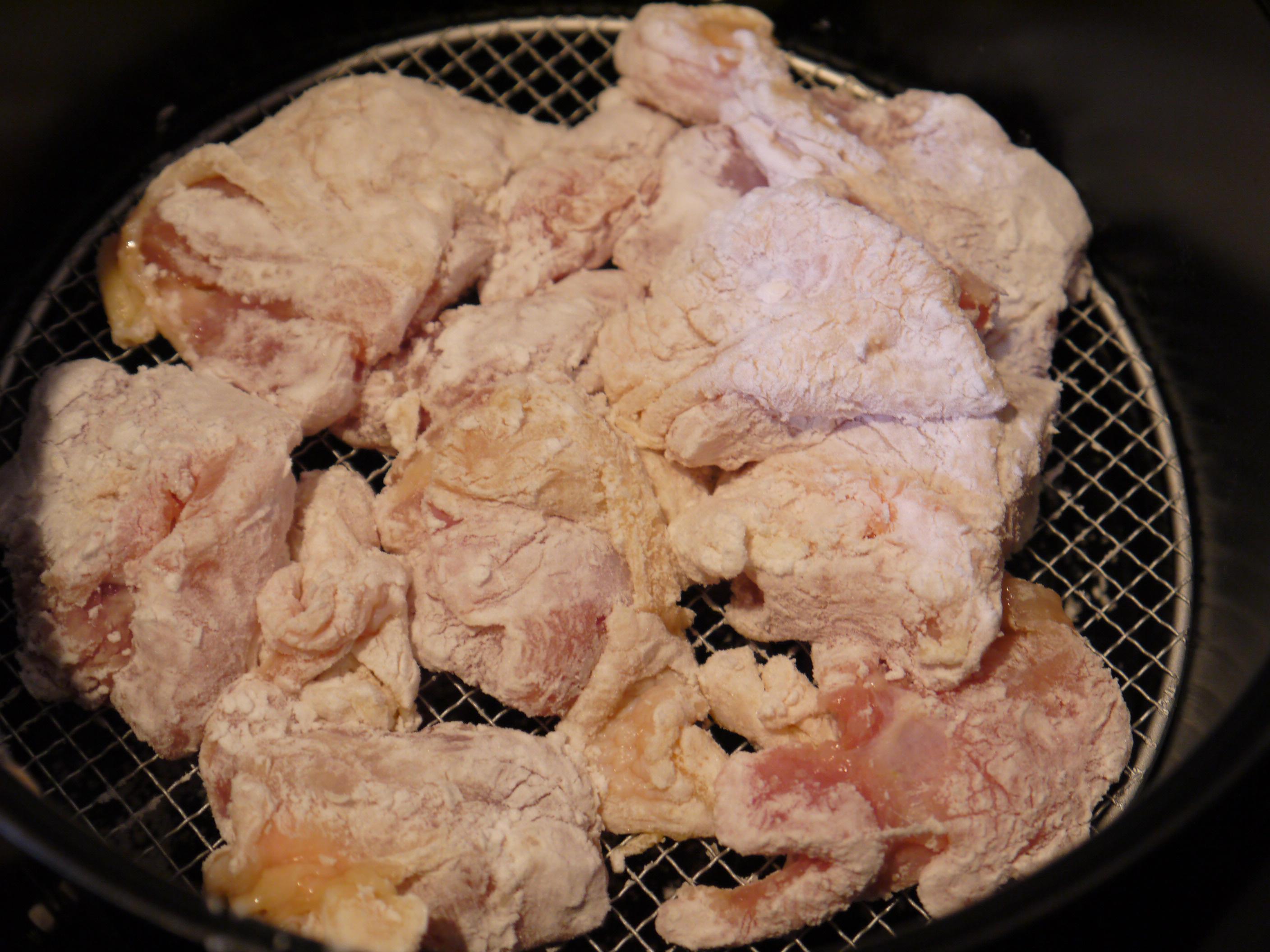 味付けはまあ置いておいて(^_^;)、片栗粉が結構残っていたのが気になったので、片栗粉を調味料と一緒にもみこむレシピ(「ケンタロウのごはんがうまいこの一品」に載っていた「和風味のフライドチキン」)を試してみました。