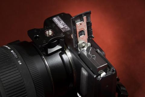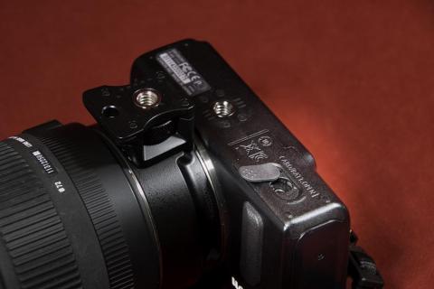 あと EOS Mに ACアダプターを取り付けたかったのが、マウントアダプターを装着した状態でクイックシューを付けると電池ボックスのフタが開ききらず電池を取り出すことが出来ませんでした。