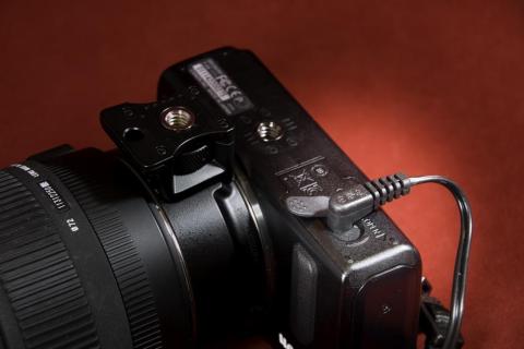 一眼レフカメラでは、カプラーとコードが一体化されてグリップ側の切り欠きからコードが出るようになっており底面からコードが出ないようになっていたりします(Canonしか知りませんが)。