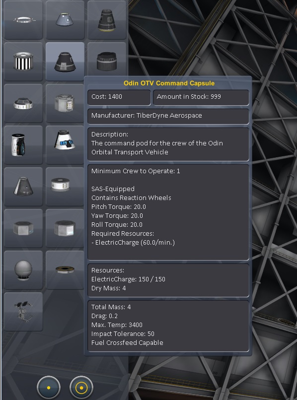 最初のころは、有人宇宙飛行はせず、下の方にある人工衛星パーツを使って、ロケット設計や操作系の練習をするほうが無難だ。
