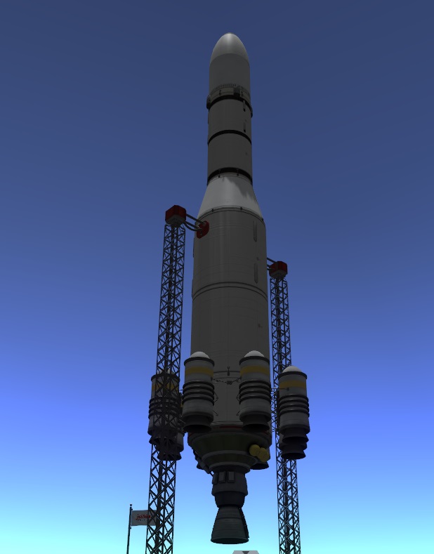ちなみに、人類初の人工衛星打ち上げや、宇宙船ボストークなどの打ち上げで使われ、現在も現役で使用されているロシアのR7ロケットも、自立出来ないので胴体中央から宙づり状態で打ち上げられる。