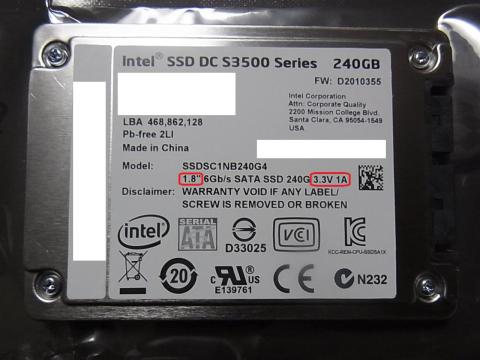 SATA電源コネクタはmicroSATA。そして本体には3.3V/1Aと表記されてます。