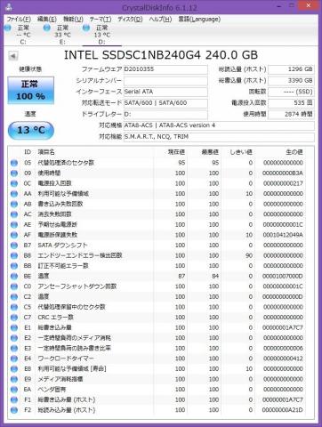 (参考:OS用に使っているSSDは7900GB(3480時間)程度です)