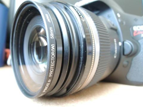 手持ちで余っていた58mmのプロテクターを装着してみると、鏡筒に対してフィルター径がやや細く貧弱に感じていた標準の状態よりも、程よいバランスに感じる。