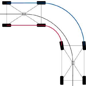 タイヤのグリップがLSDの制限力よりも強ければ、LSDが負けてカクカクした動きに。