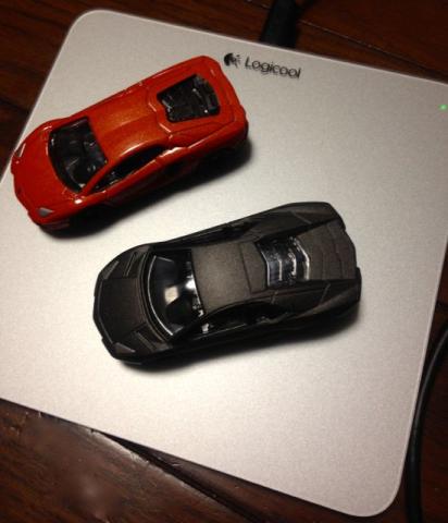 大きさはトミカと比較してこのくらい。MacbookAirのパッドの2倍までは行きませんが、このくらい大きいと楽です。